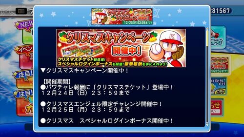 『サクスペ』(パワプロ)のクリスマスキャンペーンが終了して、使わず溜めていたクリスマスチケットを使う時が来ました!